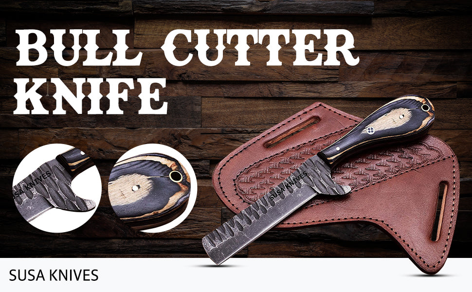 Ride the range with SUSA Knives' classic Damascus bull cutter and cowboy...
